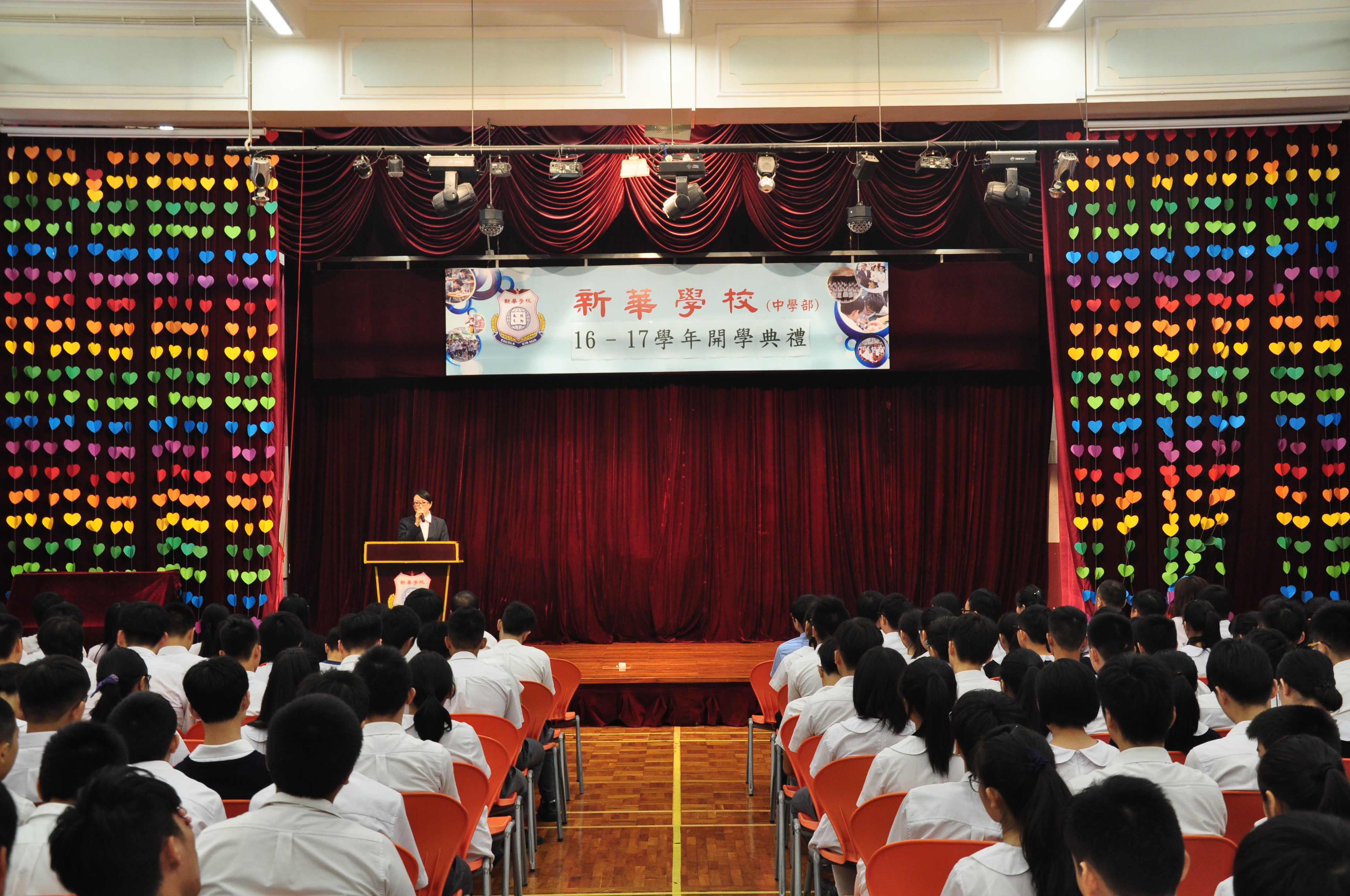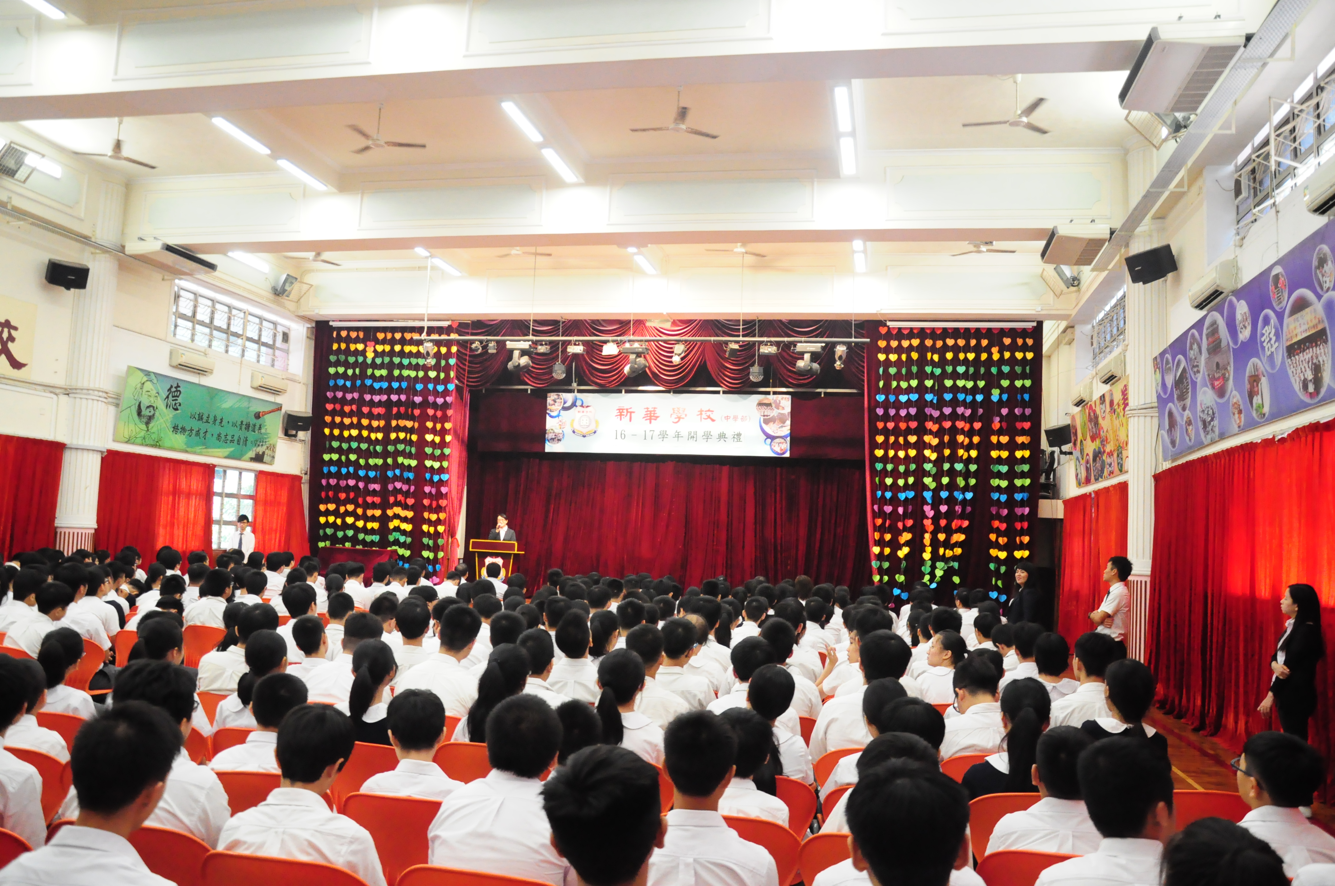 新華學校校長何宇於開學禮上,歡迎新生加入新華大家庭,又宣佈學校將積極投入更多資源進行科組改革,銳意加強英文、數學、化學、生物、物理等主要科目。同時致力優化餘暇活動趨向多元,增設葡文班數量,勉勵同學在專注課堂之餘,亦要調動閒暇進行多向學習,以培養自身的良好素養和技能,成為棟樑之材,服務社會,以迎接「一個中心、一個平台」的發展機遇。同時,又祝願在新學年裡同學們能學有所成,教師們能竭盡所能為教育事業貢獻力量。典禮在充滿正能量的氣氛中圓滿結束。