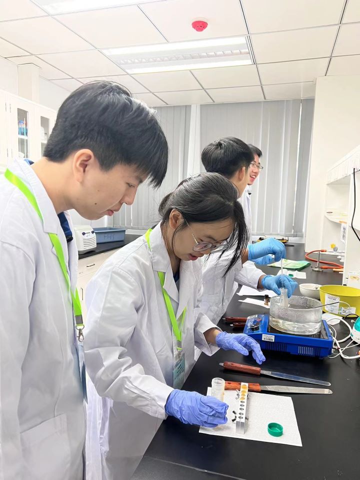 同學們先聆聽了濠江學者曾華鑫博士的詳細介紹,更深入地了解到澳門大學健康科學學院的升學資訊。隨後,在學院人員的帶領下,參觀動物實驗室,運用他們從平日課堂探究學習所學到的知識,動手進行多個與生物醫學、藥物科學及生物信息學相關的實驗。在大學導師的指導下,進一步提升了科研能力、學習科學理論和實驗的技巧,深切感受到科研的樂趣。