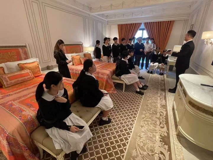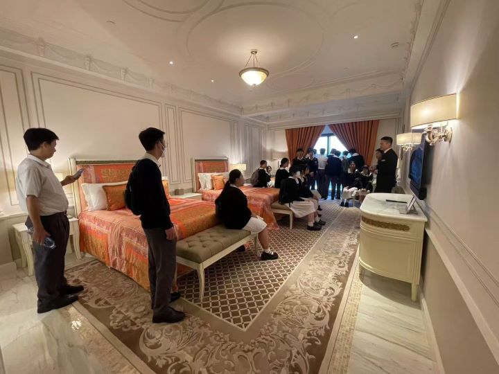 同學們參觀了位於上葡京的卡尔拉格斐酒店和凡賽斯宮殿酒店,藉此瞭解本澳酒店業的發展狀況和不同工種的工作形式,為未來做好職業生涯規劃增進認識。