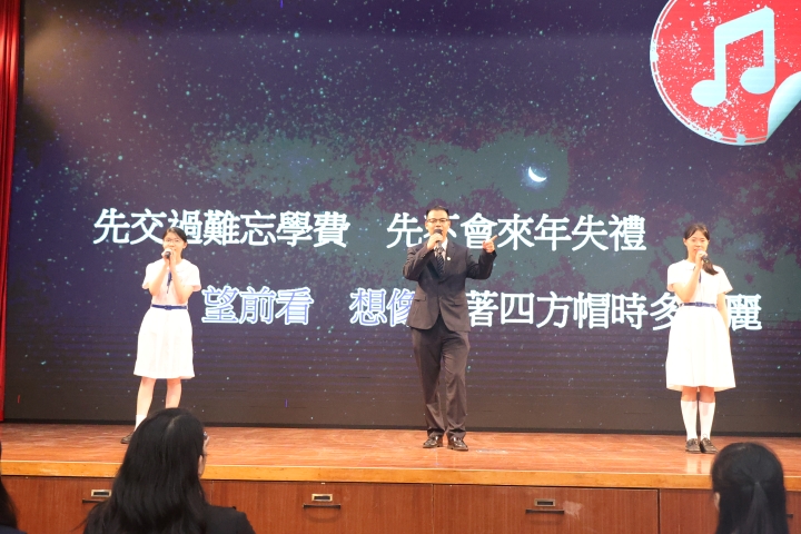典禮現場還上演了溫馨而勵志的節目——教師繆健琛與學生陳瀅穎、蘇子恩共同登臺,獻唱歌曲《開學禮》。悠揚的旋律、真摯的歌聲傳遞出深切的期許,希望同學們以誠信堅毅,在困境中堅守原則,在實踐中積累經驗,樹立終身學習的理念,穩步前行。