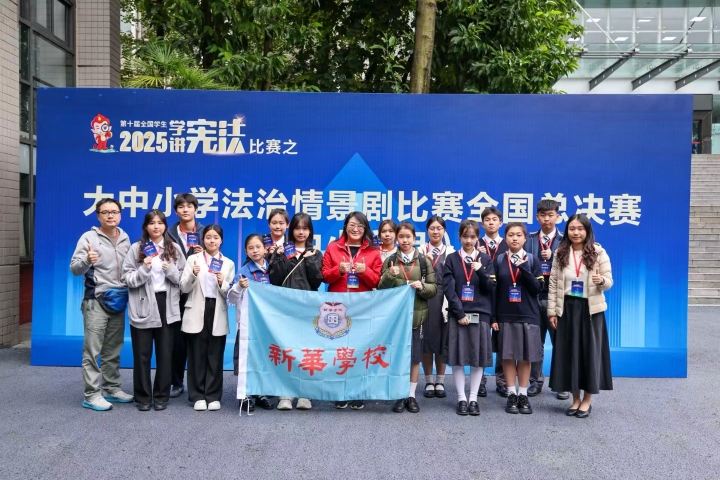 第十屆全國學生“學憲法講憲法”活動之大中小學法治情景劇比賽全國總決賽近日於重慶西南政法大學圓滿落幕。新華學校中學部13名學生代表於11月8日至11日前往重慶參賽,作品《法治在身邊》榮獲中小學組三等獎。