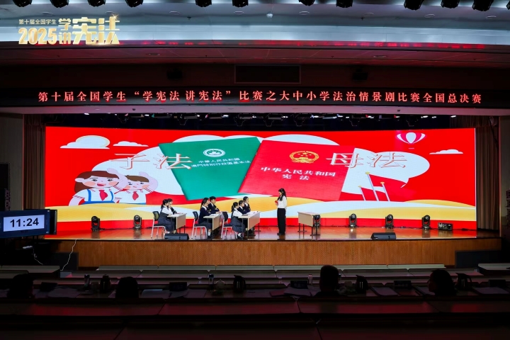 本屆比賽初賽共收到來自全國各省市的94份參賽作品,其中中小學組共有33份作品。新華學校參賽作品經選拔,成功晉級全國總決賽。在決賽舞台上,同學們展示真摯的情感和生動的表演,以市民日常生活為背景,通過具體案例與情景表演,展現法治在社會生活中的引導與保障作用,傳遞尊法、學法、守法、用法的核心理念,喚起觀眾對法治建設的認同與思考。