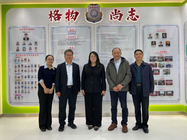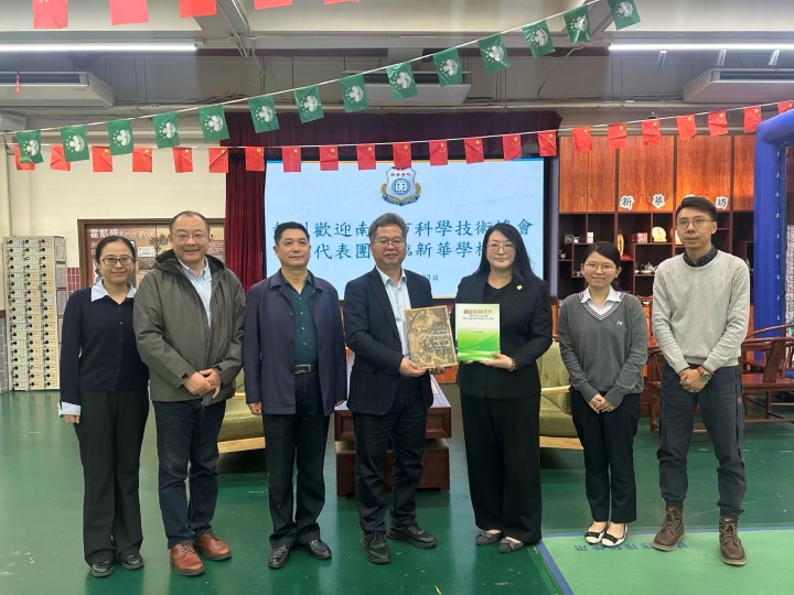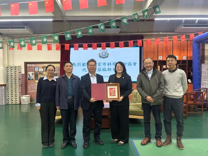 2025年12月03日上午,由南京市科學技術協會黨組成員、副主席劉啟祥、南京市科學技術協會一級調研員虞永才、南京市科學技術協會協會一級主任科員蘇曉蕾和南京市教學研究室副主任楊健組成的南京市科學技術協會代表團一行蒞臨澳門新華學校訪問交流,何宇校長與行政人員接待。