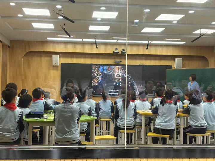 行程首日,交流團到訪姐妹學校——湖北省武昌水果湖第一小學。學生體驗非遺扎染工藝,在動手實作中感受匠心傳承,深化文化認同;教師觀摩AI賦能數學示範課《軸對稱》,課堂以黃鶴樓、長江大橋等城市地標為引導,巧妙融入地方文化元素,引領學生從生活中發現數學之美。觀課後,兩校教師評課交流,互學互鑒、共促提升。其後,師生欣賞非遺舞龍、啦啦操、獨輪車等精彩表演,氣氛熱烈。活動尾聲,兩校學生合唱《我和我的祖國》,以溫暖的歌聲傳遞深厚情誼,為兩校後續交流合作開啟新篇章。